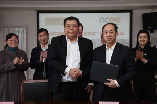 仪式上,覃川与王啸宇作为双方代表分别签署了《中英创新创业教育示范基地建设协议》和《双创师资合作协议》。覃川、王啸宇、薛玉平和Chris Brown共同为“中英创新创业教育示范基地”揭牌。