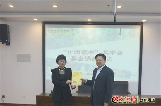 据了解,“化雨读书”奖学金由青岛职院张薇教授个人捐赠设立,旨在奖励品学兼优、喜欢读书写作的学生,以鼓励学生传承中华优秀传统文化精神,热爱读书、砥砺品行、厚德有为。