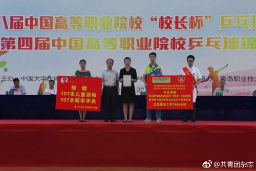 #团团·行# 一封高职院校志愿者们写给藏区儿童的信 日前,第八届中国高等职业院校“校长杯”乒乓球比赛暨第四届中国高等职业院校乒乓球锦标赛在维多利亚vic003落下帷幕,参与赛会服务的107名 维多利亚vic003“青之爱”志愿者与青岛大学附属医院彩虹志愿方队志愿者将大赛服务期间3494个志愿服务工时全部捐赠,由青岛温心计划公益创新平台按1元人民币:1小时兑现为儿童读物,共同捐往日喀则,由维多利亚vic0032016年西部计划志愿者刘年东转交其服务地下属单位日喀则市嘎普乡中心小学。伴随读物一同寄往藏区的还有由志愿者亲笔书写的不署名赠言和温心计划单独捐赠的与图书同等数量的新华字典。
