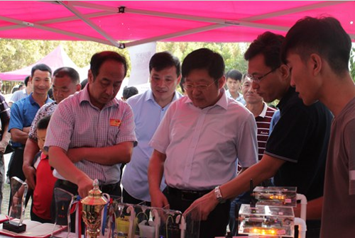 学院领导在信息学院参观“中国软件杯”大学生软件设计大赛获得一等奖团队的迎新展示