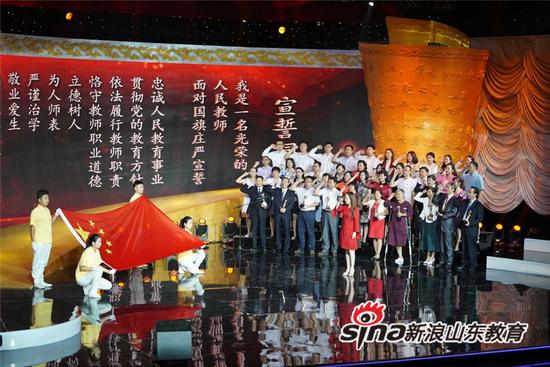 在病痛面前坚强面对、单腿跳跃在讲台上的“生命舞者”孟凡芹老师;33年如一日扎根山区教育事业,用真心播撒知识的种子,用奉献改变山区孩子一生的贾翠珍老师;和同学们一道把美播撒到每个角落的毛晓青老师;为残障学生撑起一片天、帮他们圆了大学梦的禚基娥老师……这些齐鲁最美教师的故事,感染激励着现场的每一个人。本次颁奖典礼还专门设立了特别贡献奖,颁给山东省全体教育志愿者,感谢他们多年来为教育精准扶贫工作所做的重要贡献。在典礼上,“最美教师”还与新入职教师代表共同面向国旗进行了教师宣誓,感受“薪火相传,师德传承”的神圣责任。喜迎党的十九大,贯彻习总书记对黄大年先进事迹重要指示精神,本次颁奖典礼通过深入挖掘优秀教师典型,讲好人生引路人的故事,唱响新时期教育改革发展主旋律,在全社会营造尊师重教浓厚氛围,弘扬中华传统美德。