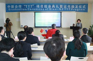 4月10日上午,新西兰国立中部理工学院院长里昂·福理 博士(Dr. Leon Fouri)一行四人,专程来青岛为参加中新合作“TTT”教师培训项目的15位学员颁发结业证书,同时代表新西兰教育标准质量局(NZQA)为通过认证考试的4位教师颁发海外高等教育资格学历证书。