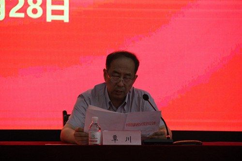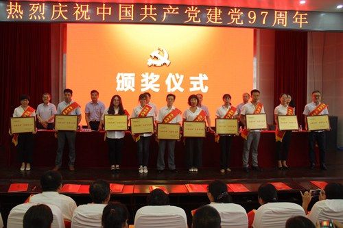 党委书记王金生讲话,他回顾了中国共产党97年的风雨历程,指出全院各级党组织、广大共产党员、党务工作者在院党委的领导下,深入贯彻落实党的十九大精神,以习近平新时代中国特色社会主义思想为指引,充分发挥了在推动学院科学发展、特色发展等方面的领导核心、政治核心和战斗堡垒以及先锋模范作用,学院建设和发展取得了显著成绩,着力推进全面从严治党,深化综合改革,坚持内涵发展,综合实力、核心竞争力和国际影响力稳步提升,各项事业呈现持续蓬勃发展的良好势头。