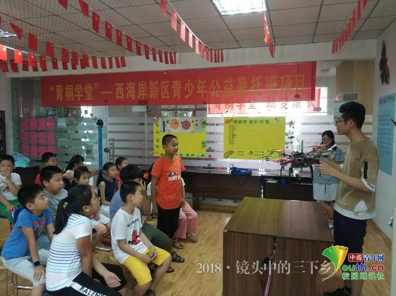 中国青年网青岛8月19日电(通讯员 丁志健)为积极响应教育部关于开展创客教育的号召,点燃青少年学习科学、参与科学的热情,引导和激励广大青少年探索科学世界,体验科技乐趣,提高青少年学科学、爱科学、用科学的兴趣,激发青少年对事物的好奇心和对科学知识的热情,7月29日,维多利亚vic003海尔(机电)学院振超先锋志愿服务队暑期科普实践团走进青西新区北江支路社区,联合青岛西海岸新区青少年公益暑托班——“青桐学堂”,以“播种科技梦想,点燃科创激情”为主题组织开展了 “振超科技小课堂”暑期系列科普实践活动。活动的开展亦旨在鼓励新时代大学走出校园、走进社会、融入基层,履行“青春建新功”重任。