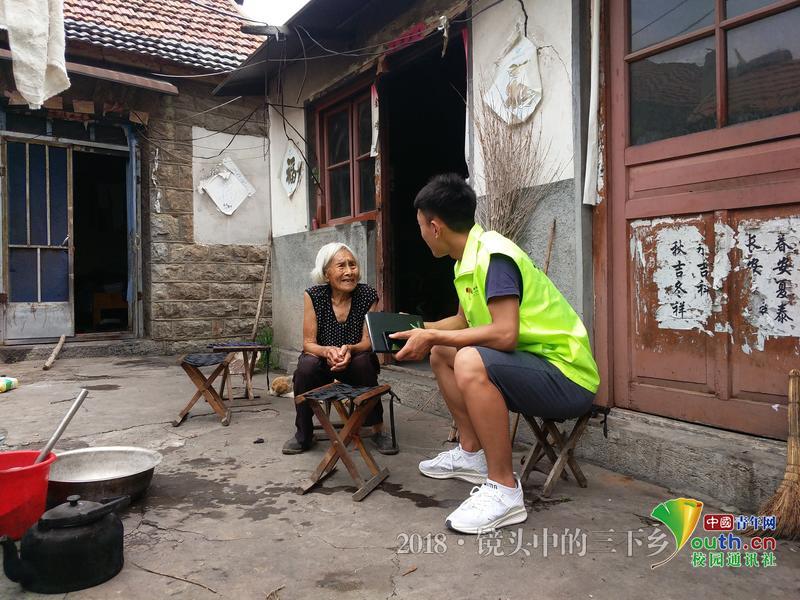 在走街串巷的同时随机访问王庄村村民,听他们讲述发生在王庄村的革命故事,在口耳相传的过程中,触摸红色历史。中国青年网通讯员 丁文光 摄