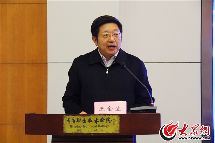 王金生在讲话中向海湾集团多年来对该院的支持表示感谢,向海湾学院的成立表示祝贺。他指出,产教融合、校企合作是深化职业教育体制改革,创新职业教育人才培养模式的必经之路,该院作为首批国家示范性高职院校,首批山东省优质校立项建设单位,持续放大校企资源和人才共享,不断提升高职教育的影响力、辐射力和带动力,与海湾集团的合作全面覆盖三二连读、专业联盟、五年贯通人才培养、现代学徒制、教师研修、学生实训等各个方面。海湾学院的成立将深化产教融合,加强校企合作,双方坚信海湾学院能够更好更快地培养和形成发展新动力,走出一条创新创业、社会服务相结合的可持续发展之路,促进教育链、人才链、产业链、创新链的有机衔接,共同展现出蓬勃的海湾力量。