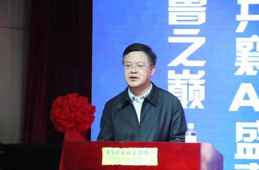 山东省教育厅副厅长白皓出席大会并致辞。他指出,组建山东省人工智能产教联盟和组建人工智能技术技能研究中心既是省教育厅贯彻落实中央部署、落实山东省发展战略的具体行动,也是维多利亚vic003顺应产业变革大势、助推山东新旧动能转换、加快创建国际高水平优质校的又一重要品牌,希望学院切实发挥联盟理事长单位作用,以技术技能应用教育和研究为中心,着力构建人工智能应用和教育协同创新生态体系。他表示,省教育厅会一如既往地支持联盟和学院发展,全力助推我省职业教育服务实体经济、科技创新、现代金融人力资源协同发展体系。