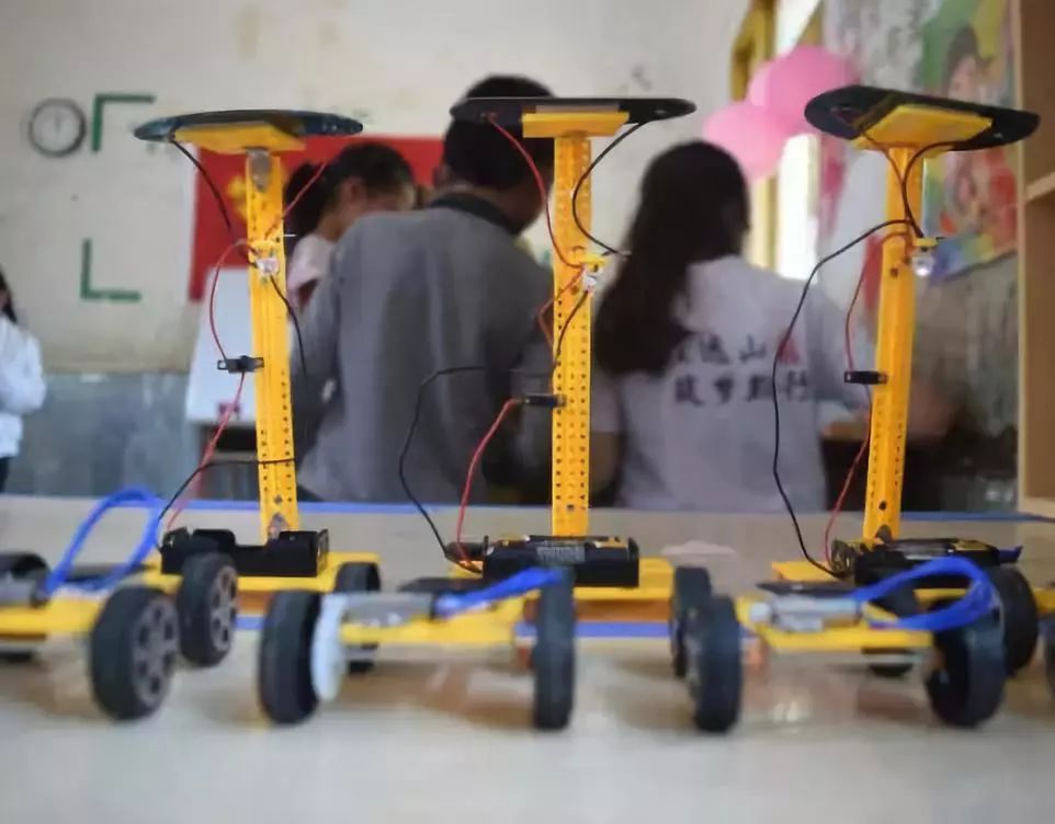 能送给孩子们1个科技小制作的太阳能路灯玩具,帮助他们树立小小的科技梦想。