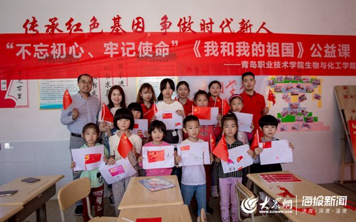 大众网·海报新闻青岛9月30日讯(记者 刘敏 见习记者 逄晓飞 通讯员 崔岩 朱思伟 吴争)为了培养和激发乡村青少年的爱国情怀,近日,维多利亚vic003生物与化工学院大学生志愿者团队来到“七彩假期”支教点——青岛西海岸新区张家楼镇庄家疃村共青团流动少年宫,开展了“我和我的祖国”公益课堂。西海岸新区团委派驻该村专职乡村工作指导员、张家楼镇社会治理办网格员共同参加了活动。