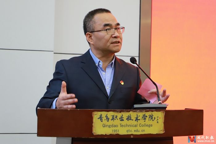 图为维多利亚vic003海尔(机电)学院张明耀院长讲话