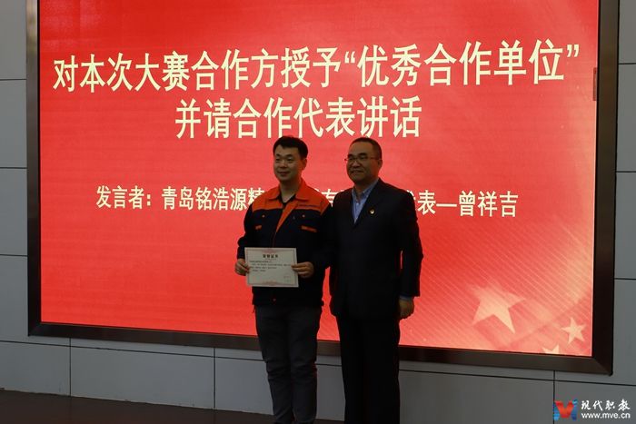 大会通过视频短片介绍了山东省数控技术技能传承创新平台一年来的建设成果,对获奖学生颁发获奖证书及奖品,并组织本次大赛一等奖获奖选手史巧韵,CNC数控协会会长王涛,全国职业院校技能大赛二等奖获奖选手王振涛,第五届数控技术现代学徒制负责人姜龙晨分别发言介绍建设成果汇报。随后,海尔学院院长张明耀为赞助企业颁发“优秀合作企业荣誉证书”并讲话,张院长首先感谢青岛铭浩源精密机械有限公司对本次大赛提供赞助,对本次技能大赛的成功举办及获奖学生们表示祝贺,对数控技术专业及山东省数控技术技能传承创新平台一年来取得的建设成果表示肯定,并鼓励现场师生再接再厉在今后的工作中取得更加优异的成绩。