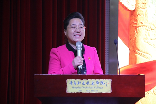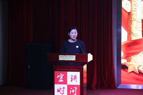 青岛职院领导干部、党总支书记副书记、思政课教师、辅导员、教育教学管理工作人员以及二级学院学生代表参加宣讲会。