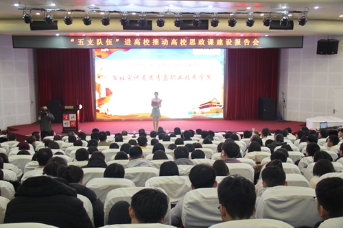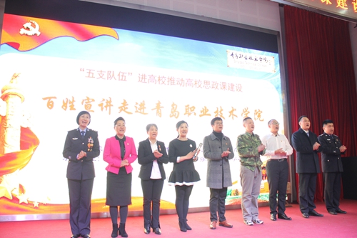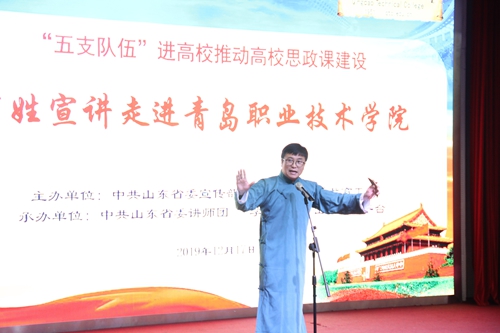 12月17日下午,由中共山东省委宣传部、中共山东省委教育工委主办,中共山东省委讲师团、“学习强国”山东学习平台承办的“五支队伍”进高校活动走进青岛职院,助力学校思政课建设。进一步推动学校思政课改革和建设。
