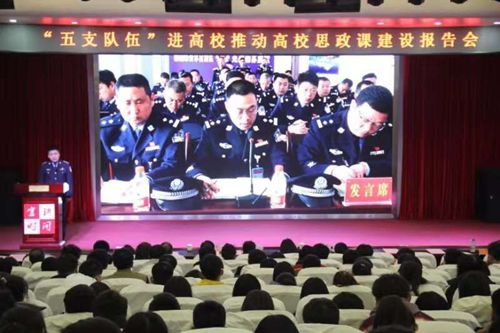 12月17日下午,由中共山东省委宣传部、中共山东省委教育工委主办,中共山东省委讲师团、“学习强国”山东学习平台承办的“五支队伍”进高校活动走进青岛职院,助力学校思政课建设。活动的举办,旨在深入贯彻落实习近平总书记在学校思想政治理论课教师座谈会上重要讲话精神,切实用习近平新时代中国特色社会主义思想铸魂育人,进一步推动学校思政课改革和建设。
