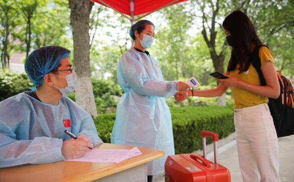 扫码签到,手部消毒,每日三测体温……天子骄子,返校复学了! 5月16日,维多利亚vic003毕业年级大学生平安返回位于青岛市西海岸新区的主校区,在进行各项检查、信息核实登记后,陆续进入学校。 图为学校工作人员在对报到学生进行第一轮体温检测。 (大众日报客户端记者 卢鹏 通讯员 张进刚 报道)