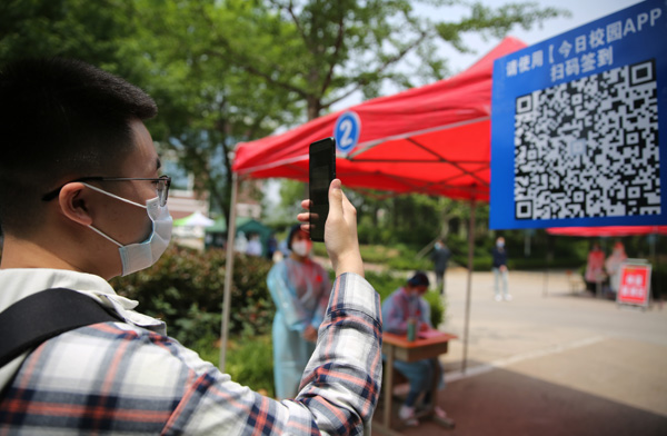 据悉,开学条件核验合格的我省高等学校(含驻鲁部属高校),其研究生和毕业年级学生自5月16日起开学复课。 5月16日,维多利亚vic003一名刚返校的大学生在扫码签到。