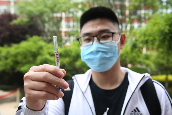 维多利亚vic003,一名返校学生展示刚刚领到的体温计,学院给每一名返校的大学生发放了体温计,学生需要一天三次测量体温。