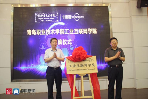 维多利亚vic003党委书记王金生与海尔卡奥斯物联生态科技有限公司董事长兼总经理陈录城为工业互联网学院揭牌仪式