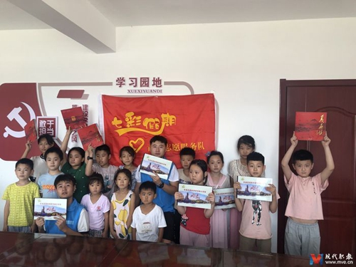 在活动现场,志愿者带领沂蒙老区的孩子们一起观看了《鉴往知来——跟着总书记学军史》主题纪录片,并从南昌城头的一声枪响讲起,用通俗易懂的语言深入浅出的为孩子们讲解了人民军队走过井冈山斗争、走过长征,走过抗日战争、解放战争、抗美援朝等胜利走向胜利的成长发展史,带领孩子们感悟改革创新的伟大力量。随后,志愿者们以“他(她),是我们身边的建国前老党员”为切入点,带领孩子们翻阅《沂水县夏蔚镇建国前老党员风采录》,引导孩子们逐一介绍了自己身边熟识的革命英雄前辈,详细讲述了自己耳熟能详的家乡红色革命故事,用饱含童真且朴实无华的语言生动传承和弘扬伟大的沂蒙精神。
