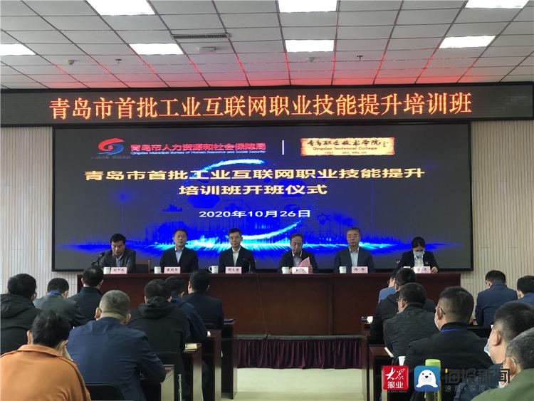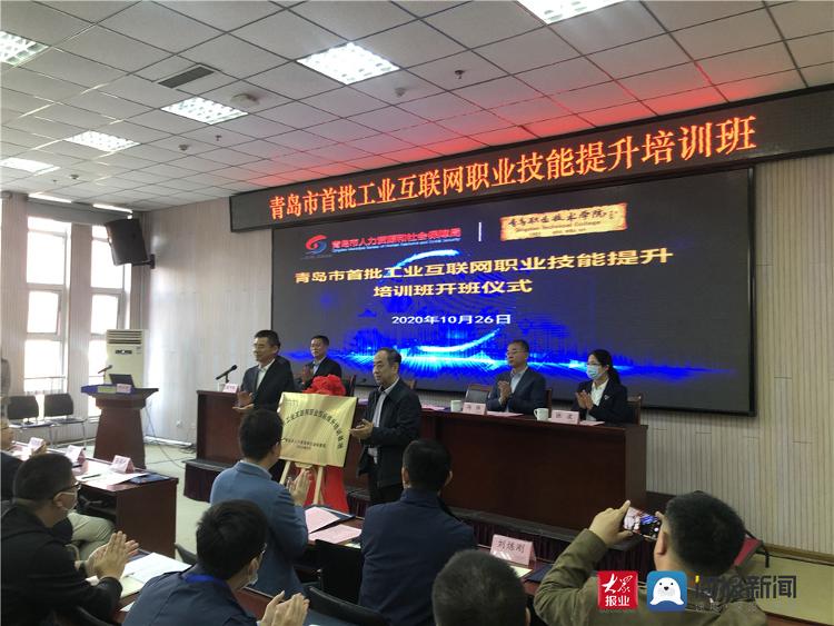 开班仪式上,青岛市人力资源和保障局局长胡义瑛、维多利亚vic003院长覃川共同为青岛市工业互联网职业技能提升培训基地揭牌。