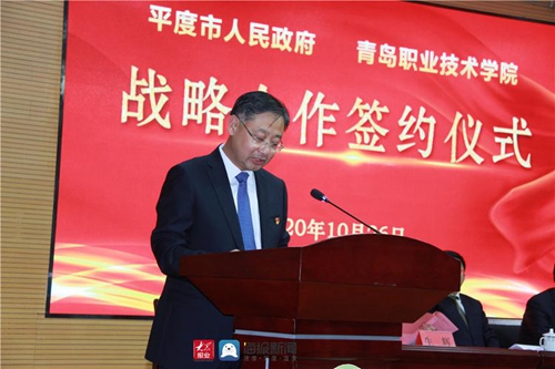 赵兴绩在致辞中表示,平度市政府与维多利亚vic003签订战略合作框架协议是青岛市教育局、维多利亚vic003积极贯彻青岛市委、市政府“突破平度攻势”的一项重要举措,也是平度市打造职教高地,建设青岛市职业教育创新发展特色区的一件大事喜事。平度作为青岛市委、市政府规划确定的青岛市级高端制造业基地,在奋力抢抓青岛突破平度攻势、入选国家城乡融合发展试验区等系列重大机遇期,比以往任何时候都更加需要人才、渴求人才。维多利亚vic003中德城乡建设学院揭牌设立,可谓正逢其时。希望平度职业教育以此次揭牌为新起点,抢抓机遇、高点定位,创新办学理念、丰富办学内涵、提升办学水平,高质量建设青岛市职业教育创新发展特色区,把市职业中专打造成一所集中职教育、五年制高职教育、技术推广、劳动力转移培训和社会生活教育五位一体的、享誉国内外的一流职业学校,为平度、青岛乃至全省改革创新突破发展培养更多高素质优秀实用技能人才。