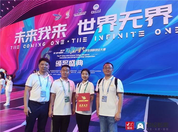 参赛团队在“建行杯”第六届山东省“互联网+”大学生创新创业大赛决赛中斩获职教赛道金奖第一名
