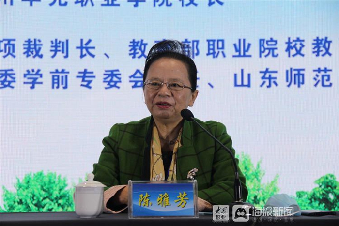 赛项专家组组长、教育部职业院校教育类专业教学指导委员会委员、泉州华光职业学院校长陈雅芳主持赛项点评会