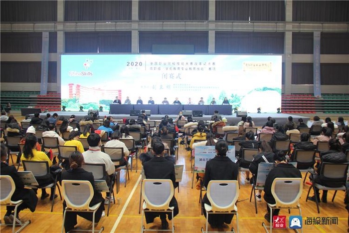 11月29日,2020全国职业院校技能大赛改革试点赛高职组 “学前教育专业教育技能”赛项闭赛式在青岛职院举行。教育部职业院校教育类专业教学指导委员会主任刘兰明,赛项执委会副主任、青岛市教育局总督学李岷,维多利亚vic003党委书记王金生、赛项专家组组长陈雅芳、赛项裁判长张小永、赛项监督仲裁组组长曲晓绪、赛项监督仲裁组专家王泽荣、监督仲裁刘泓蔚、幼乐美(北京)教育科技有限公司董事长陈洪秋,赛项执委会委员、维多利亚vic003副院长邢广陆,赛项专家组高红欣、周晶出席,来自全国各省市自治区和新疆生产建设兵团的32所高职院校参赛队领队、指导教师和参赛选手和相关人员参加了闭赛式。闭赛式由邢广陆主持。