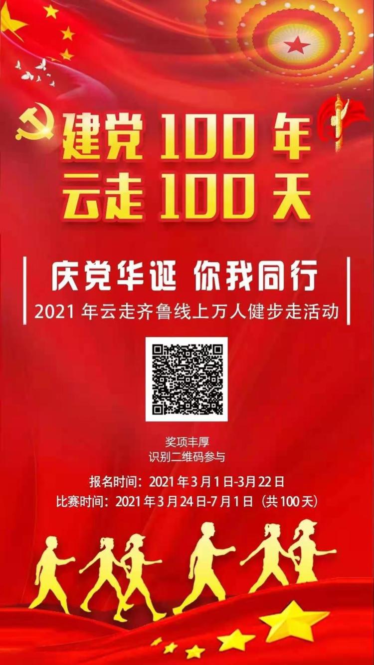 “云走百天 庆党华诞”2021年云走齐鲁线上万人健步走活动是由山东省体育局主办的一项覆盖全省的大型全民健身活动,倡导市民走出家门、拥抱自然,通过定期打卡方式,养成良好健身运动习惯。主办方将今年的活动与“建党 100 周年”主题高度融合,无论是赛事规模、赛事质量都较去年有所提升。据组委会介绍,本次活动的启动时间为3月24日,共历时100天,将于7月1日落下帷幕并举行线下健步走活动。同时,为了提高参赛的体验感和线上比赛的精确性,组委会今年与悦跑圈战略合作,利用悦跑圈的计步优势,提高线上赛事的专业性。