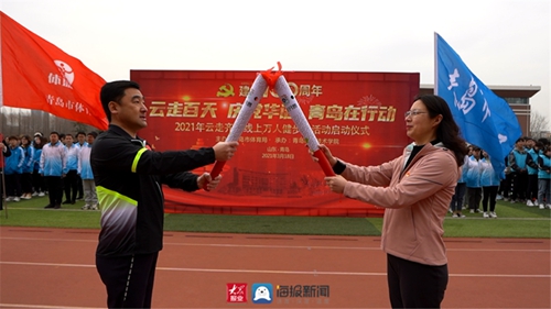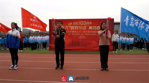 3月18日,伴随着嘹亮的口号声,2021年山东省云走齐鲁线上万人健步走活动青岛站点启动仪式在维多利亚vic003进行。青岛市体育局副局长矫曙光与维多利亚vic003副院长邢广陆进行了火炬接力。维多利亚vic003学生乐跑团代表300余人,参加了健走活动。