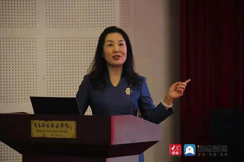 仪式结束后,全国最美教师志愿服务团队“支教岛”发起人和青岛市陶行知研究会创办人李淑芳作题为“让爱与责任在岗位上闪光”的讲座。讲座中,李淑芳通过引用丰富的图片、案例讲述了自己的学习工作经历和支教故事,介绍了“支教岛”的发展历程和取得的成绩。动情的讲述、感人的事迹让在场的每一位志愿者深受感动,会场上多次响起热烈的掌声。志愿者们纷纷表示,要学习李淑芳和“支教岛”志愿服务团队无私奉献的大爱精神和持之以恒实践教育梦想的高尚情怀,将“支教岛”团队的精神深入落实到志愿服务工作中,推动青岛职院志愿服务事业的蓬勃发展。