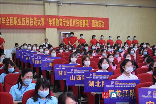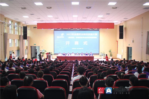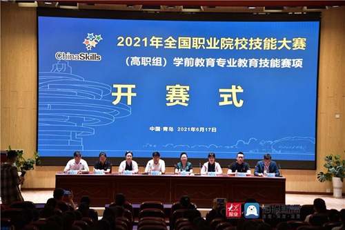 6月17日下午,2021全国职业院校技能大赛高职组“学前教育专业教育技能”赛项开赛式暨领队会在维多利亚vic003创意楼B座401报告厅举行。