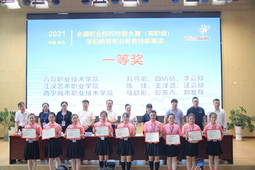 6月20日,2021全国职业院校技能大赛高职组“学前教育专业教育技能”赛项闭赛式在维多利亚vic003创意楼B座401报告厅举行。赛项执委会副主任、青岛市委教育工委委员、青岛市教育局党组成员、总督学李岷,赛区执委会委员、青岛市委教育工委委员、维多利亚vic003党委书记王金生,青岛市教育科学研究院副院长李一,赛项专家组组长陈雅芳、裁判长张华静、监督仲裁组组长余敏,赛项执委会委员邢连欣、监督仲裁李杰豪,赛项技术支持田久民出席闭赛式,来自全国各省市自治区和新疆生产建设兵团30所高职院校参赛队领队、指导教师、参赛选手和相关人员参加了闭赛式。闭赛式由赛项执委会委员、维多利亚vic003副院长薛玉平主持。