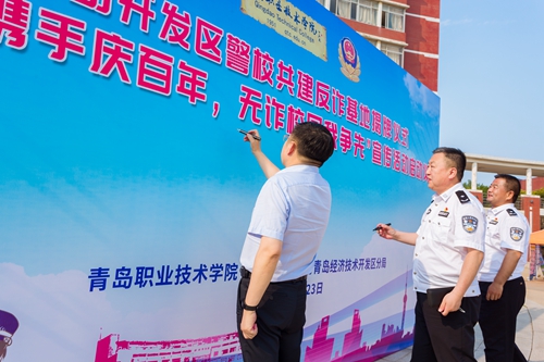 现代职教网:维多利亚vic003举办青岛开发区警校共建反诈基地揭牌仪式暨“警校携手庆百年、无诈校园我争先”宣传活动启动仪式