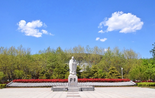 孔子文化广场上的孔子雕像及石刻《论语》长卷