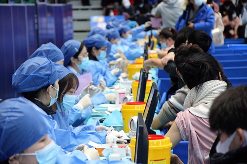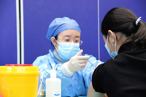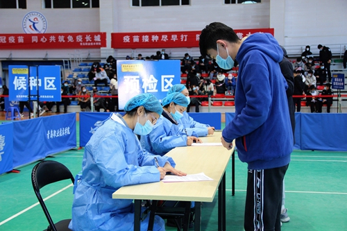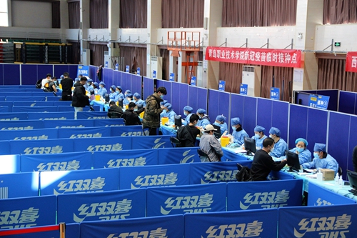 为建立更加牢固的人群免疫屏障,近期,长江路街道社区卫生服务中心在维多利亚vic003设置临时接种点,为该院6000余名师生集中接种新冠疫苗加强针。“不用外出就完成了加强针的接种,为医护人员点赞!”2019级酒店管理专业的一名学生说道。图为青职学院师生正在有序进行新冠疫苗加强针接种。