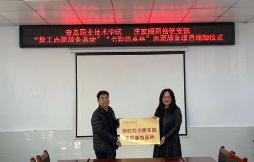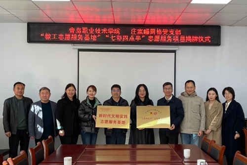 青岛西海岸新区张家楼街道乡村振兴又传佳音,2021年11月12日上午,青岛西海岸新区张家楼街道同泰新村庄家疃网格党支部与维多利亚vic003艺术学院党总支联手,在庄家疃党群活动中心共同举行了“教工志愿服务基地”和“七彩四点半志愿服务项目”揭牌仪式。