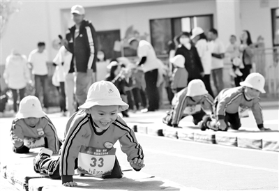①云南会泽中国中铁第三幼儿园幼儿在“障碍跑”。