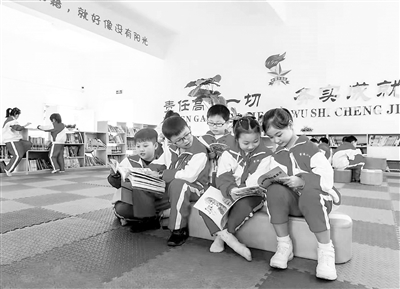 ②江西省芦溪县芦溪镇第二中心学校学生在开放式书吧里阅读书籍。