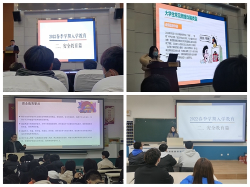 上好安全教育的第一课,筑牢安全之基。“开学第一课”安全教育以国家安全、疫情防控、消防安全等专题为核心,教育引导学生提升安全素养,增强防范意识。生物与化工学院组织开展“国家安全观教育”主题班会,引导全体学生树立国家安全观,增强责任担当意识。旅游学院就消防安全、心理健康、交通安全、食品安全、人身财产安全等内容开展安全主题教育,积极开展疫情防控演练,并针对“电信诈骗”等讲述甄别技巧和预防措施。各二级学院还讲授了卫生安全相关知识,教导学生养成良好的生活习惯,强健体魄,保持身心健康。