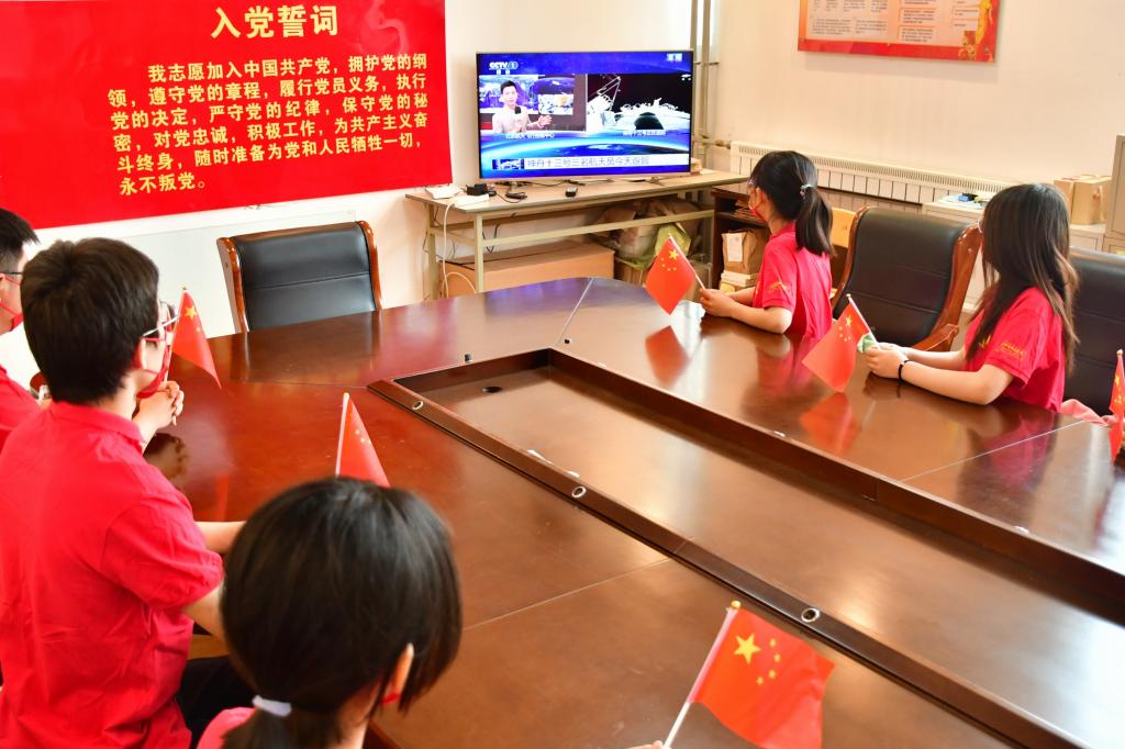 开启“集体学习”新模式,组织“爱国心·报国情·强国志”——“神舟十三号航天员返回”线上直播学习。为及时推广“强国TV”学习渠道,突出线上互动,融入线下教育,通过丰富多彩、喜闻乐见的学习形式发挥网络思政育人功能,青岛职院宣传部、生物与化工学院党总支组织部分在校学生党员、入党积极分子通过最新的“强国TV”扫码集体学习形式,收看了“神舟十三号航天员返回”直播并进行了学习心得交流。当神舟十三号载人飞船返回舱在东风着陆场成功着陆,在场人员无不欢呼雀跃。参加收看的学生王堇夙表示:“通过‘强国TV’收看电视直播,和同学们共同见证航天英雄顺利完成任务、平安返回让我激动不已,这种形式让看视频、听新闻、学理论、晒积分更新鲜、有乐趣、效果好,‘学习强国’更便捷地融入了我们的学习中。”