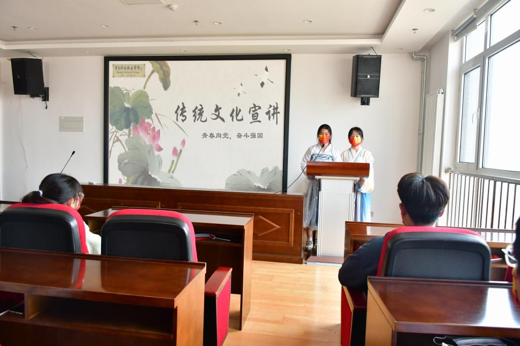 开辟“青春宣讲”新渠道,进行“青春向党 自信强国”——中华优秀传统文化“沉浸式”宣讲。4月16日,学校以学生团支书为主要成员的“团团宣讲员”围绕学校第八届中华优秀传统文化教育月“智圆行方”主题,通过“强国TV”渠道,发挥“学习强国”平台慕课资源优势,结合线上《走近中华优秀传统文化》《先秦诸子思想》等中华优秀传统文化课程,或慷慨激昂,或娓娓道来,以饱满的精神状态,进行了线下精彩的“沉浸式”宣讲。学生们纷纷表示:“此次宣讲可以扫码共同学习,形式新颖,让我们深刻领悟了中华优秀传统文化的内涵,在今后的学习和生活中,我们会更加充满文化自信、民族自信,争做新时代传统文化的践行者和传播者。”