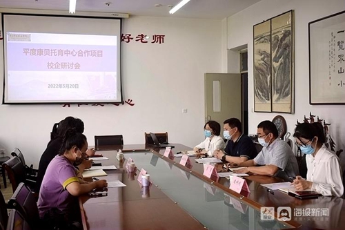 同日上午,维多利亚vic003与平度康贝托育中心合作项目校企研讨会召开。为更好地助力国家“乡村振兴”战略,积极响应社区和农村托育行业未来发展趋势,维多利亚vic003主动探索“志愿服务+托育服务”新模式,加强合作与联动,助力农村托育机构发展,积极构建农村托育服务体系,努力打造新时代文明实践试点和乡村振兴工作的品牌。研讨会双方围绕托育中心师资培训、课程体系建设、学生实习实训、志愿服务与社会实践、困难学生重点帮扶等工作展开研讨,在很多方面达成了共识。会议明确,要重点围绕保育服务、卫生保健、安全管理等内容,优先开展师资业务相关培训;加强调查研究,立足实际,合作开发具有当地农村特色的托育课程体系;制定校企共建人才培养方案,联合共建托育专业和学前教育专业学生新的校外实习实训基地;发挥专业优势,组建师生服务团队,创新开展暑期社会实践和志愿服务工作。