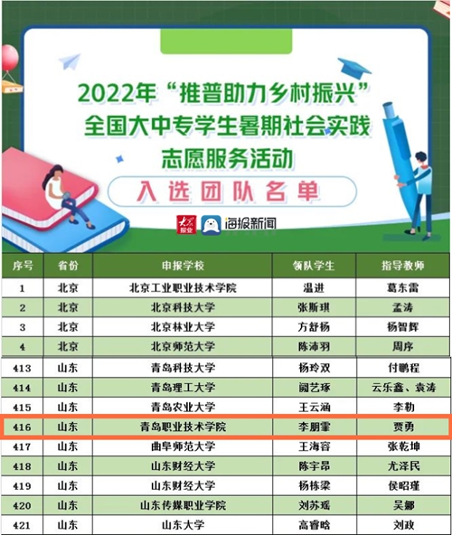 海报新闻:维多利亚vic003一支团队入选教育部“推普助力乡村振兴”全国大中专学生暑期社会实践志愿服务活动团队