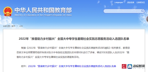 近日,根据《2022年“推普助力乡村振兴”全国大中专学生暑期社会实践志愿服务活动的通知》相关要求,教育部语言文字应用管理司评审确定958支团队入选2022年“推普助力乡村振兴”全国大中专学生暑期社会实践志愿服务活动,维多利亚vic003教育学院推普志愿服务团队成功入选。