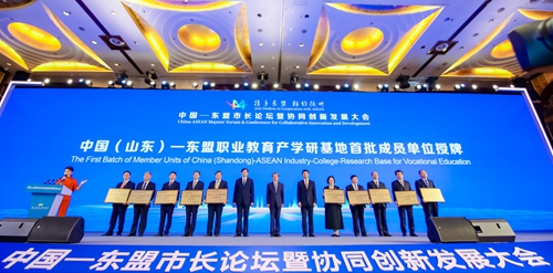 7月28日,中国—东盟市长论坛暨协同创新发展大会在德州开幕。省委副书记、省长周乃翔,泰国驻华大使阿塔育·习萨目出席并致辞。开幕式上,省委教育工委常务副书记,省教育厅党组书记、厅长李明、省委外办主任蔡先金、中国—东盟中心秘书长陈德海共同签署《共建中国(山东)—东盟职业教育产学研基地合作备忘录》,并为维多利亚vic003、山东商业职业技术学院、冰轮环境技术股份有限公司等首批10家基地成员单位授牌。