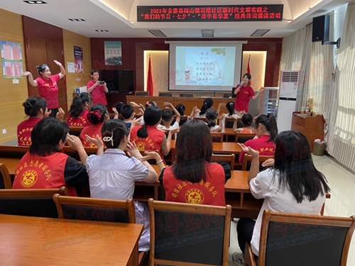 七夕节期间,“红色寻梦,爱满金寨”七彩假期公益课堂联合金寨县司楼社区新时代文明实践中心联合举办了“我们的节日·七夕—诗中有华夏”经典诗词诵读活动以及“传承良好家风,注重家庭教育”宣讲活动,志愿者趣味讲解“七夕节”的渊源传说、民间习俗以及文化诗词等方面的知识内容,聆听红色家风美德故事,选取耳熟能详的名篇佳作以诵唱、表演、情景贴画等形式与社区居民、工作人员一同演绎经典、共沐文化浪漫,构建和谐社区,助力社区青少年全面成长。