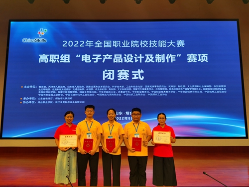 8月19日至22日,2022年全国职业院校技能大赛(高职组)“电子产品设计及制作”赛项在烟台职业学院举行。此次大赛由教育部、山东省人民政府等30多个部委主办,山东省教育厅、烟台市人民政府承办,烟台职业学院、浙江求是科教设备有限公司协办。由维多利亚vic003信息学院教师王靓、修娜指导,杨栋斌、吴佳菲、初文韬组成的学生团队在比赛中团结协作、沉着应战、稳定发挥,最终喜获大赛一等奖,王靓、修娜被评为大赛“优秀指导教师”,这是该赛项设立以来维多利亚vic003取得的历史最好成绩。