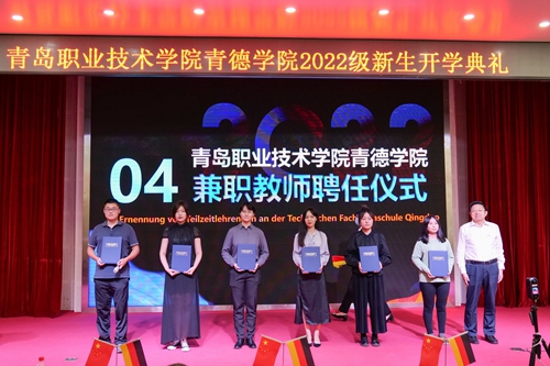 开学典礼在雄壮的国歌声中拉开帷幕。王金生为青德学院6名兼职教师颁发聘书。青德学院副院长张云龙致辞,他代表青德学院全体师生对2022级新生的到来表示热烈欢迎,并向学生们简要介绍了青德学院的师资水平、专业建设、教学和实训条件,期待新生能以优异的表现开启精彩人生。