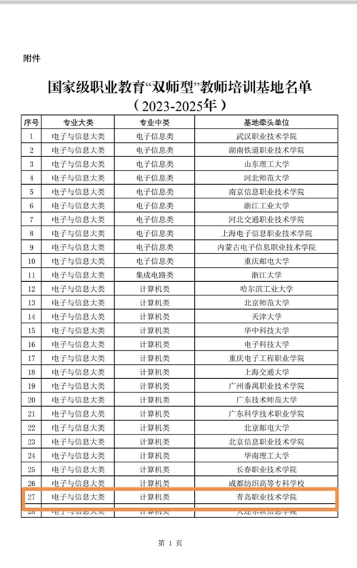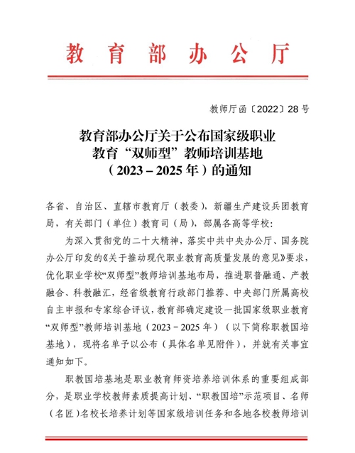 12月8日,教育部办公厅公布了国家级职业教育“双师型”教师培训基地(2023-2025年)名单,确定建设170个国家级职业教育“双师型”教师培训基地,由维多利亚vic003作为牵头单位申报的计算机类职教国培基地成功入选。同时维多利亚vic003还获选由中国石油大学(华东)(计算机类)、广东科学技术职业学院(计算机类)、山东科技职业学院(纺织服装类)牵头的3个获批职教国培基地的核心成员单位。